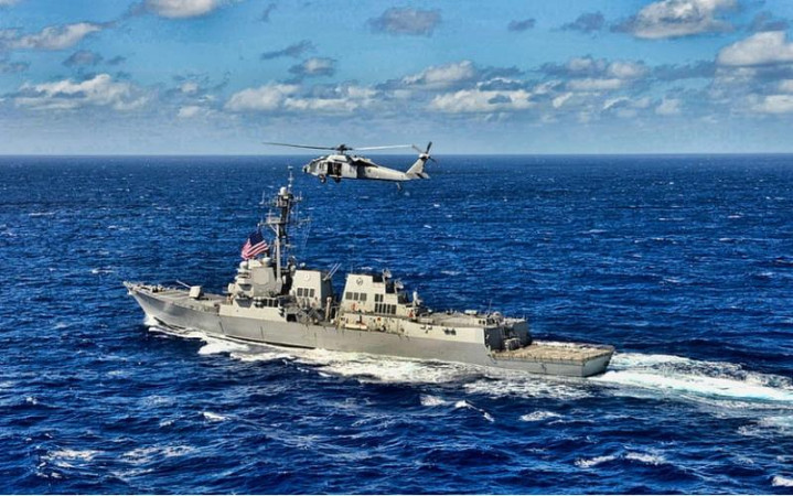 等距离压到让人后背发凉的那个圈时,细看竟然是一艘阿利·伯克级驱逐舰。