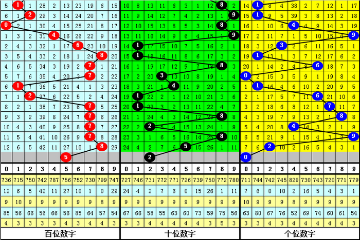 个位:1、2路号较热,本期防0路号反弹,关注0。