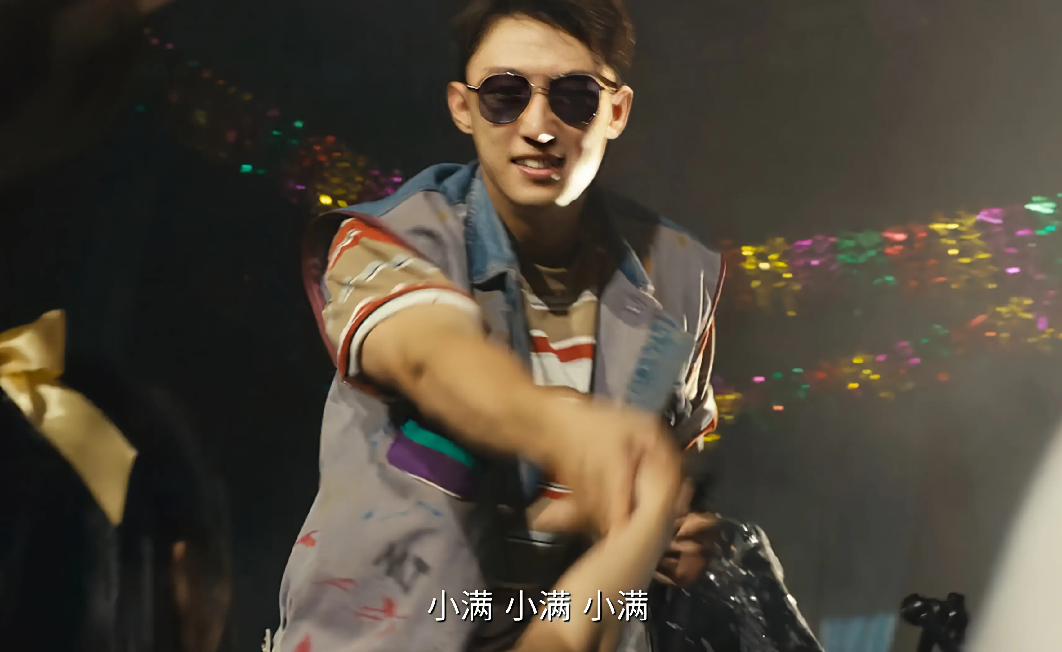 当张小满戴着墨镜弹着吉他,开口就是粤语歌,出现在舞台上时,简直太帅了,直接炸场,同学们都围了上来,犹如巨星一样闪亮,而庄森作为仿迈克杰克逊穿搭,渲染了整个舞台的氛围。